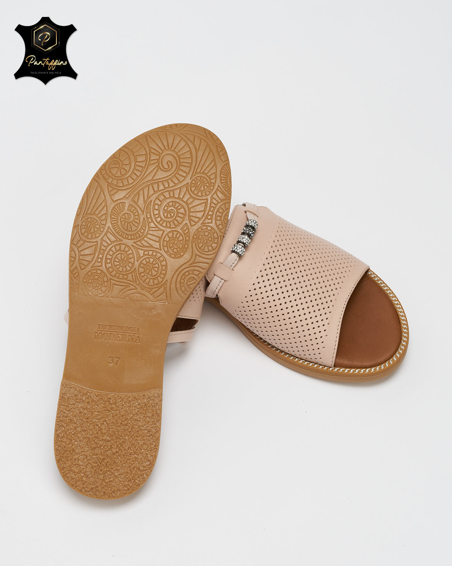 - Papuci dama din piele naturala 100%, design modern, cu talpa joasa, pentru deplasari confortabile!